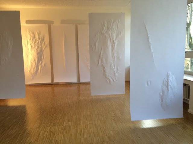 Sie raut verschieden große Papierbögen auf, ohne sie zu verletzen. Durch die fortschreitende Verdichtung der Fasern des Zeichenkartons entstehen Kluften und Wölbungen, die wie monumentale schneebedeckte Gebirge aussehen. Das Blatt Papier wird zum Leben erweckt. Stunden vergehen, während sich die Oberfläche regt, wölbt und öffnet unter der Hand von Aja von Loeper.