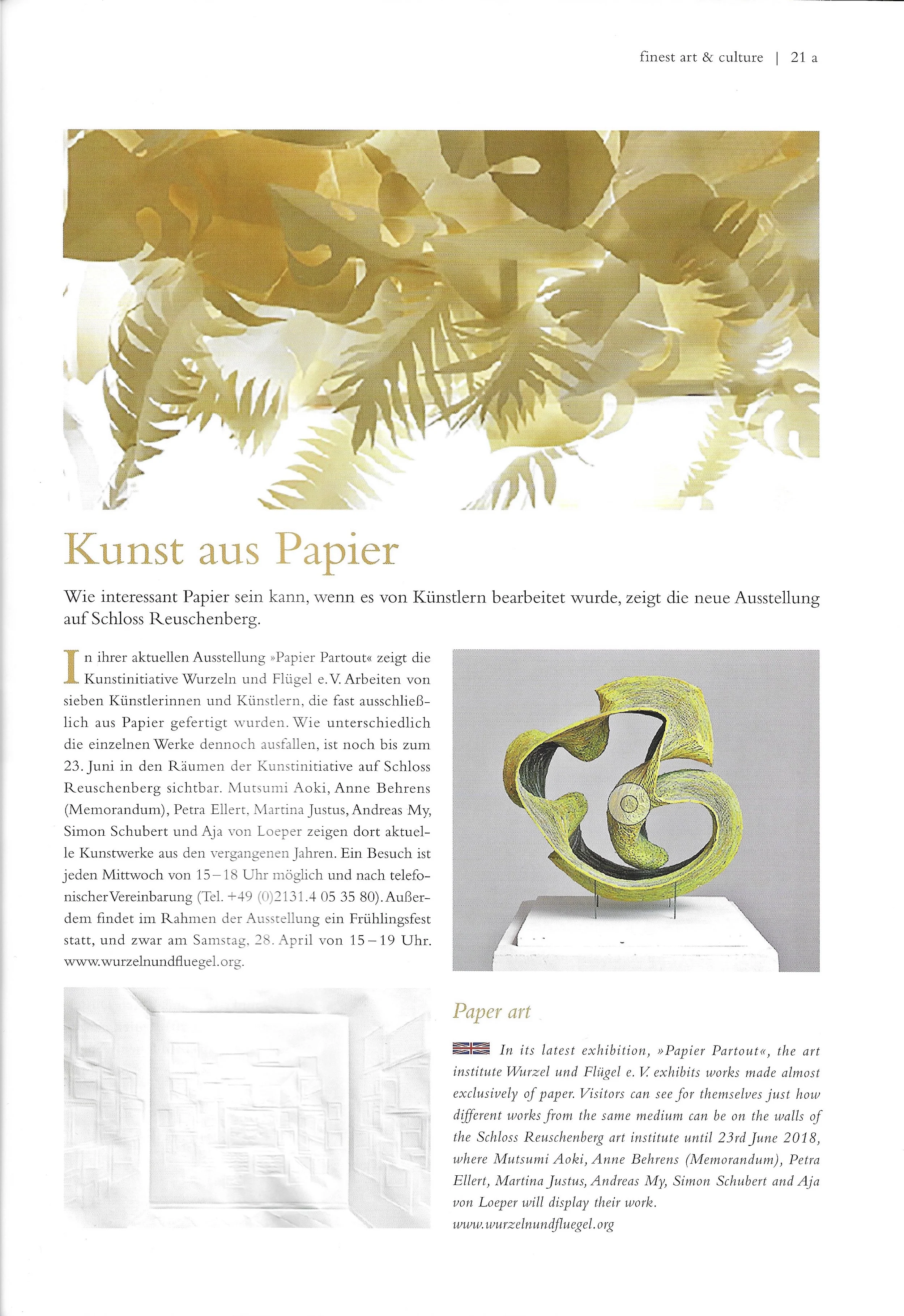 Mutsumi Aoki Andreas My Anne Behrens Simon Schubert Petra Ellert Aja von Loeper Eindrücke der Ausstellung Martina Justus zu weiteren Zeitungsartikeln zu noch weiteren Zeitungsartikeln